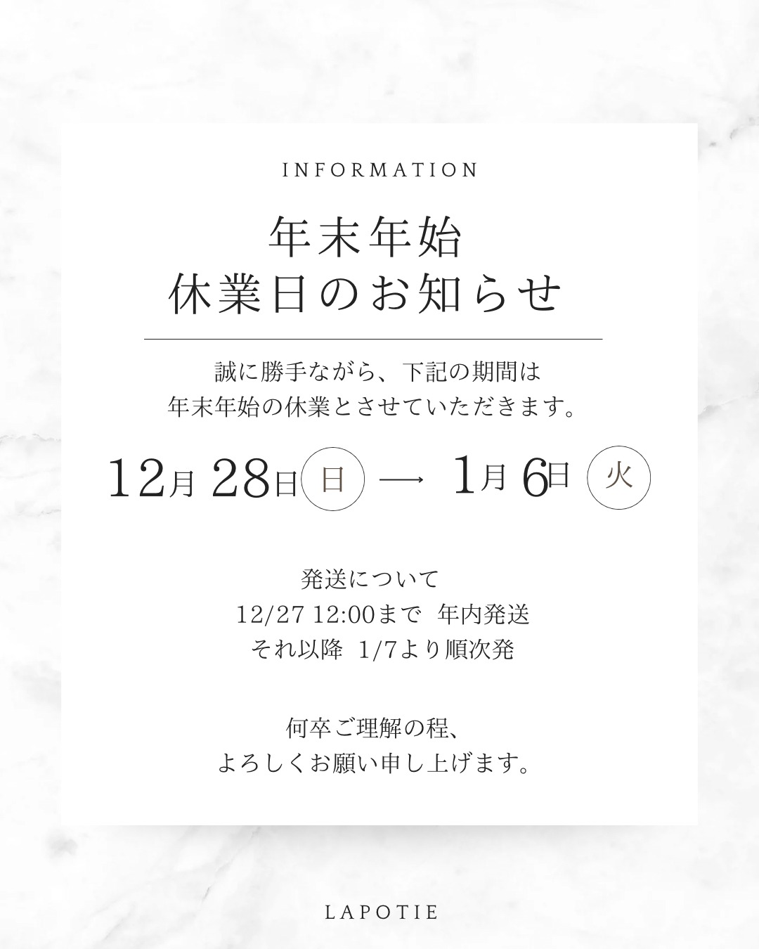 12月27日(土)12:00までのご注文分は年内発送いたします。