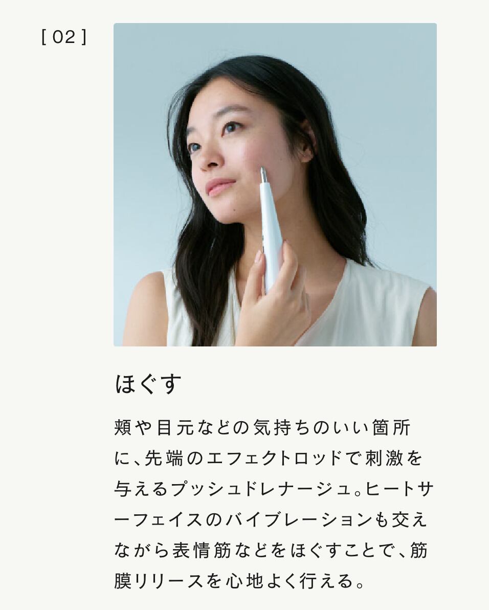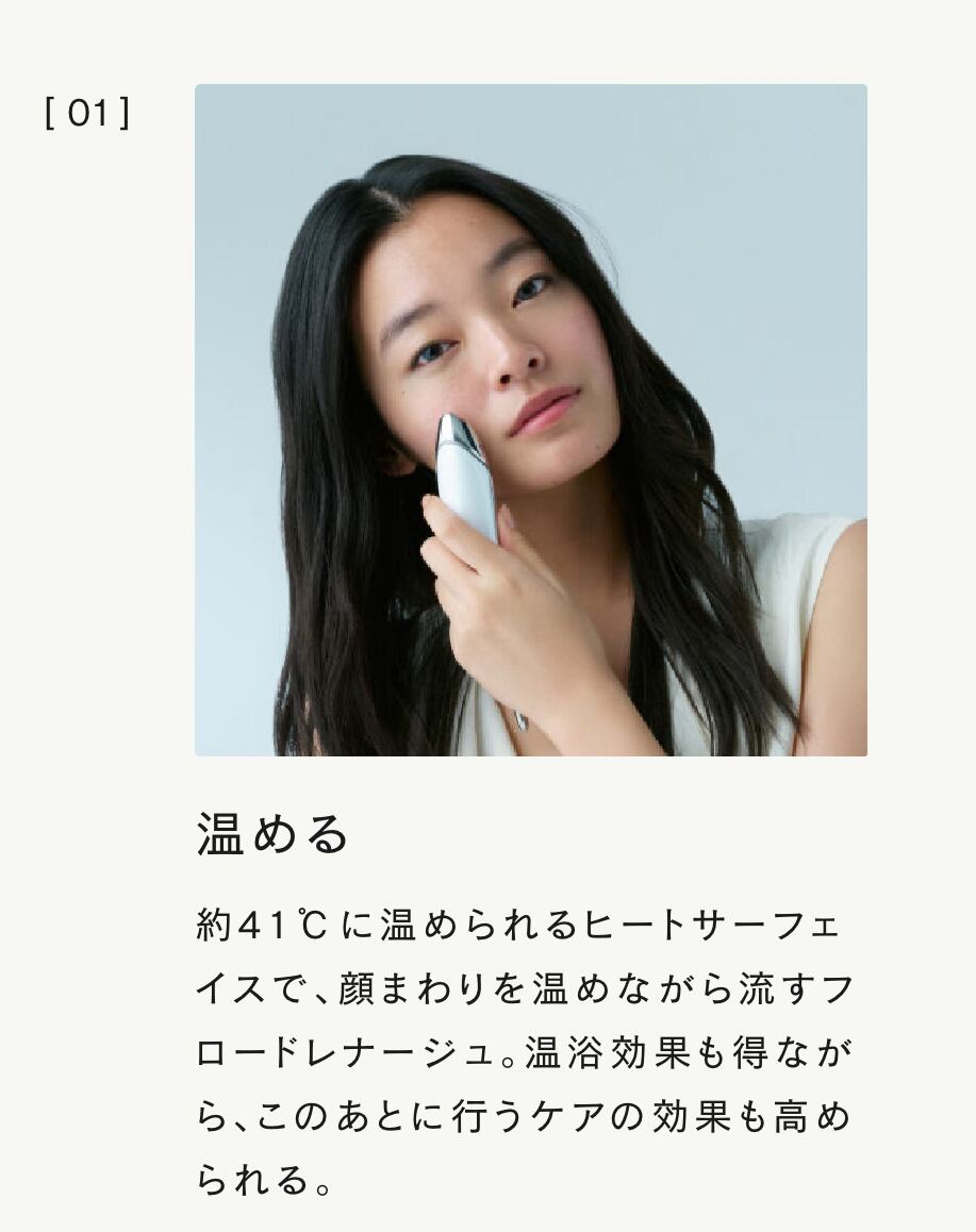 ・温感ケア:約41℃の温感ケアで血行を促進し肌にハリとツヤを与えます。