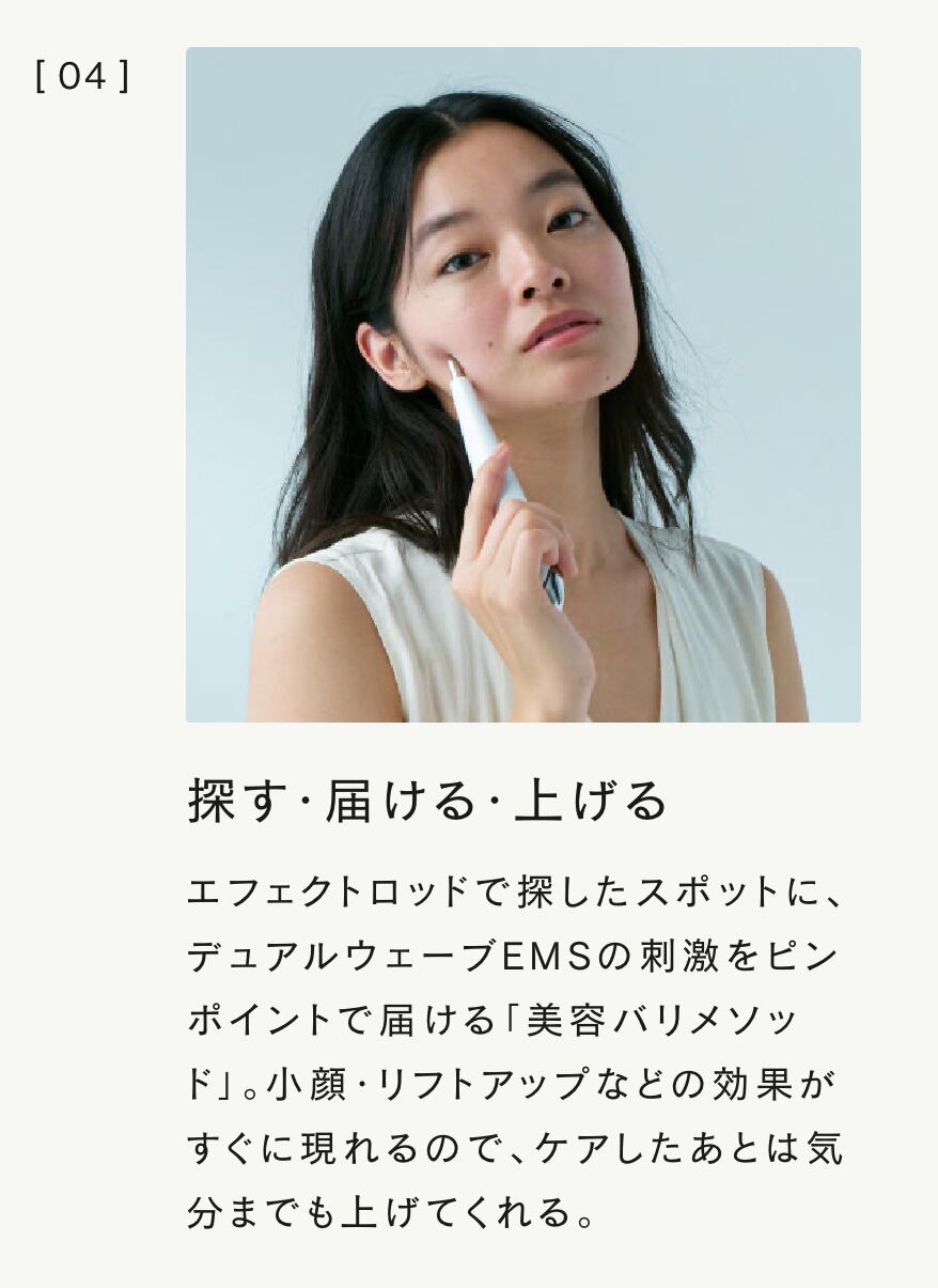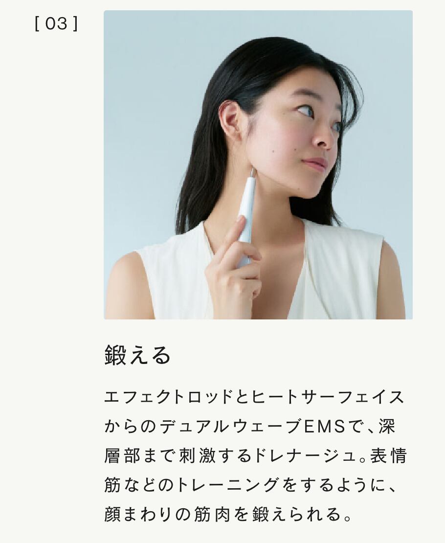EMSトレーニングや、美容鍼メソッドを駆使した筋膜リリース機能を搭載し、ご家庭でお顔のリフトアップをサポートしてくれます。