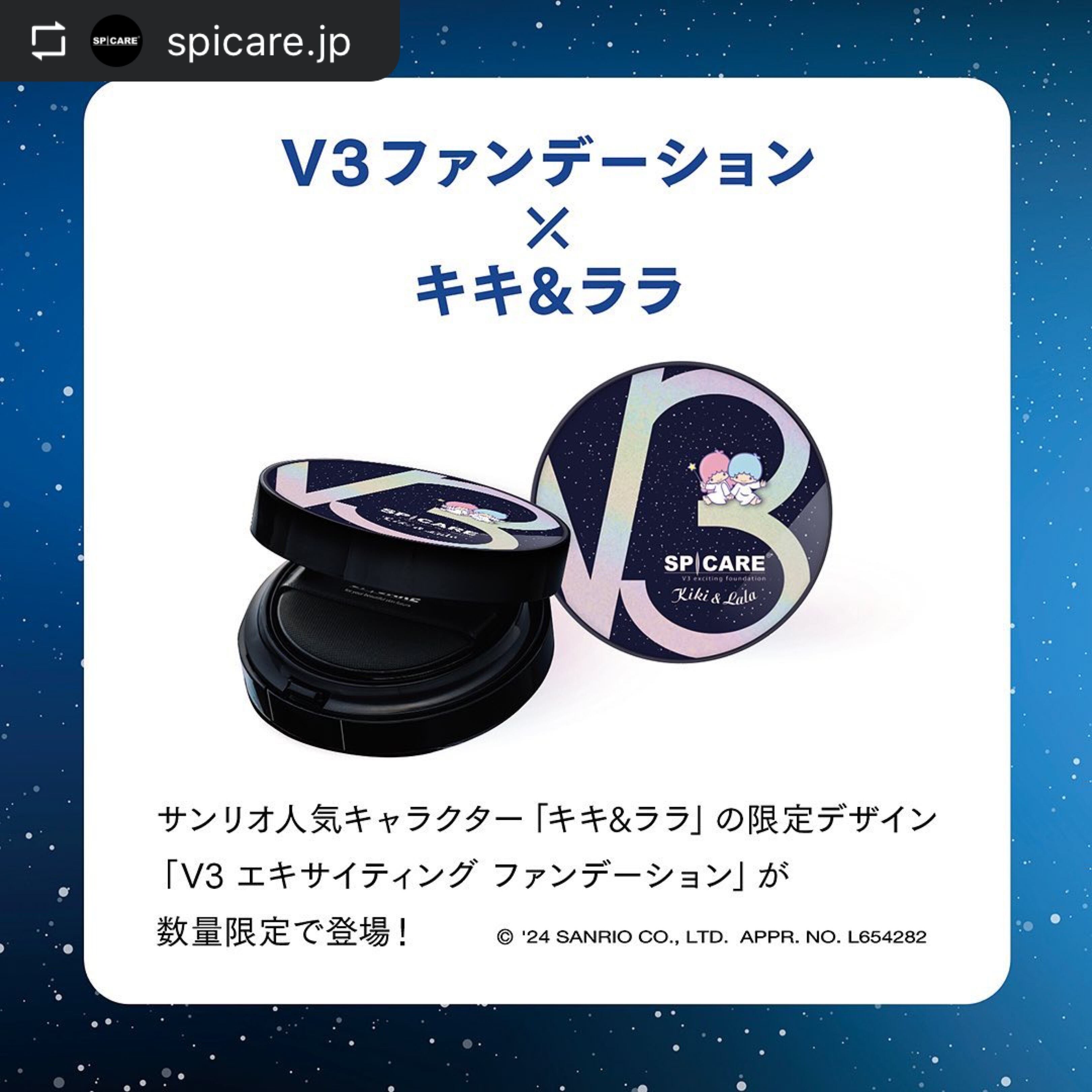突破を記念して、サンリオキャラクターの中でも大人気の「キキ&ララ」が「V3エキサイティング ファンデーション」の限定パッケージに登場します。
